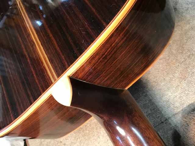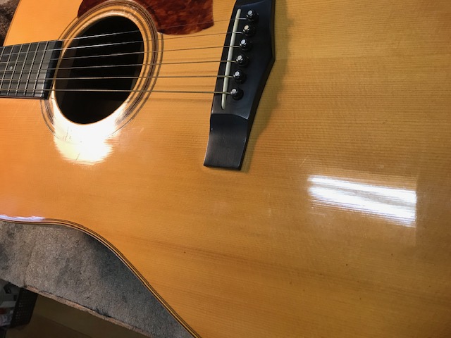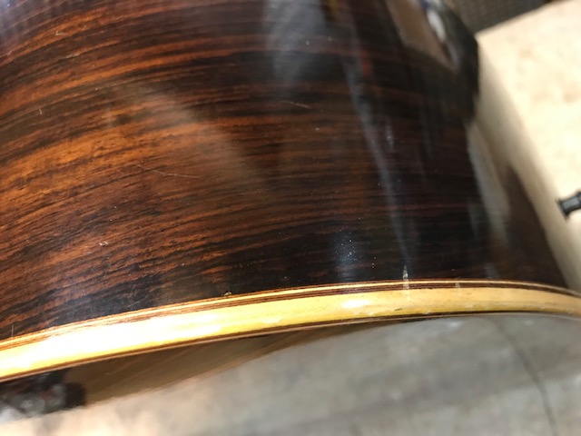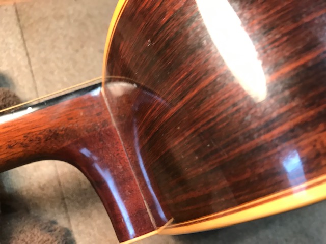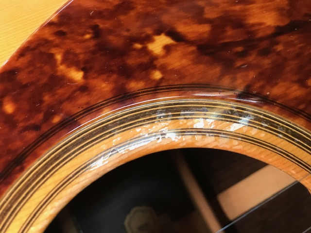ブリッジ剥がれ補修 サウンドホール周り・バックのキズ補修