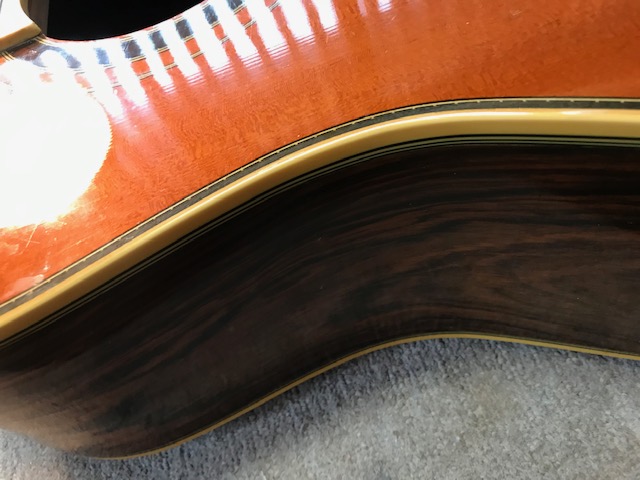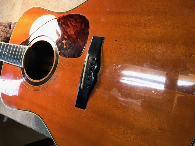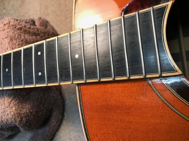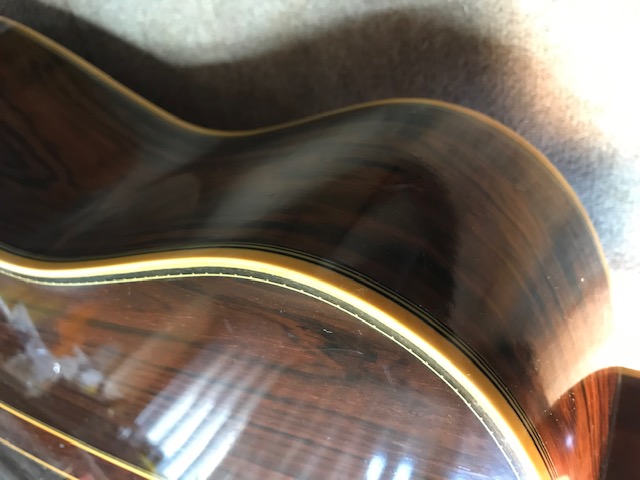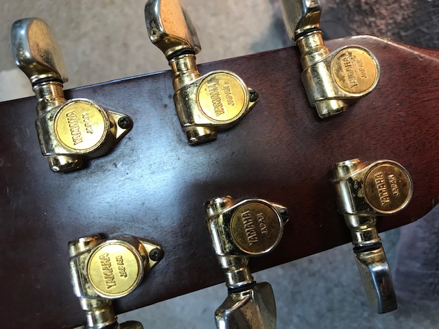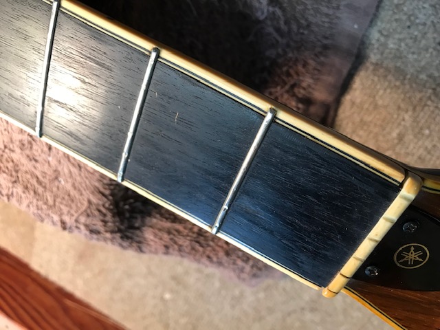 サイド・バックにブラジリアンローズウッドが使われていて、かなり使い込んでいるヤマハギターですが、今回は全フレット交換、ナット・サドル交換を実施します。
