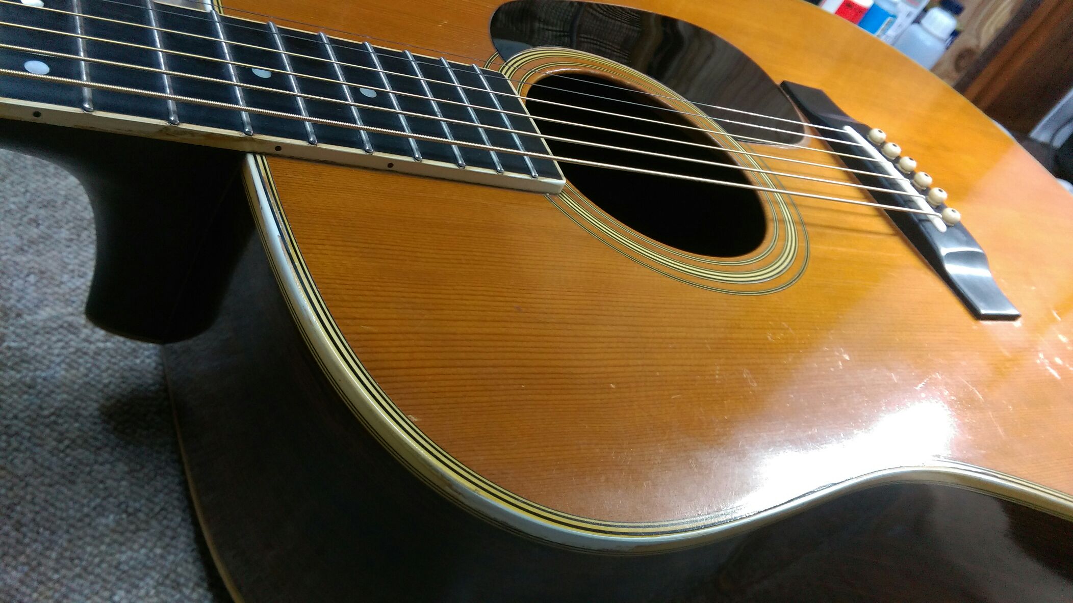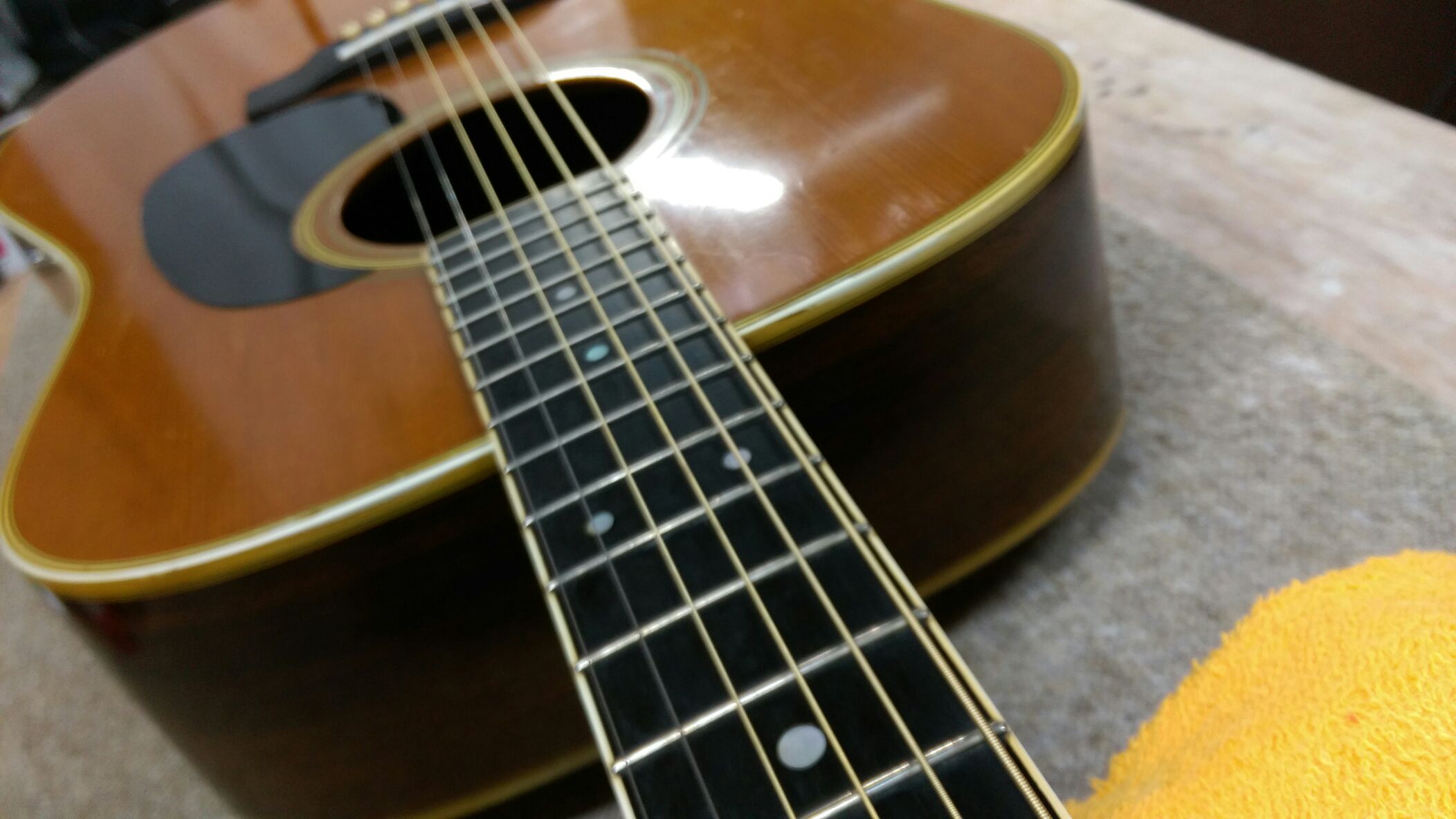 Martin D-35 作業完了 投稿日: 2015年10月12日2017年6月28日 投稿者: WoodyBlues こんにちは。リペアスタッフの金子です。 以前ブリッジ交換とネック調整を行ったMartin D-35ですが、その後、サドル溝調整、サドル作成を行い作業完了です。