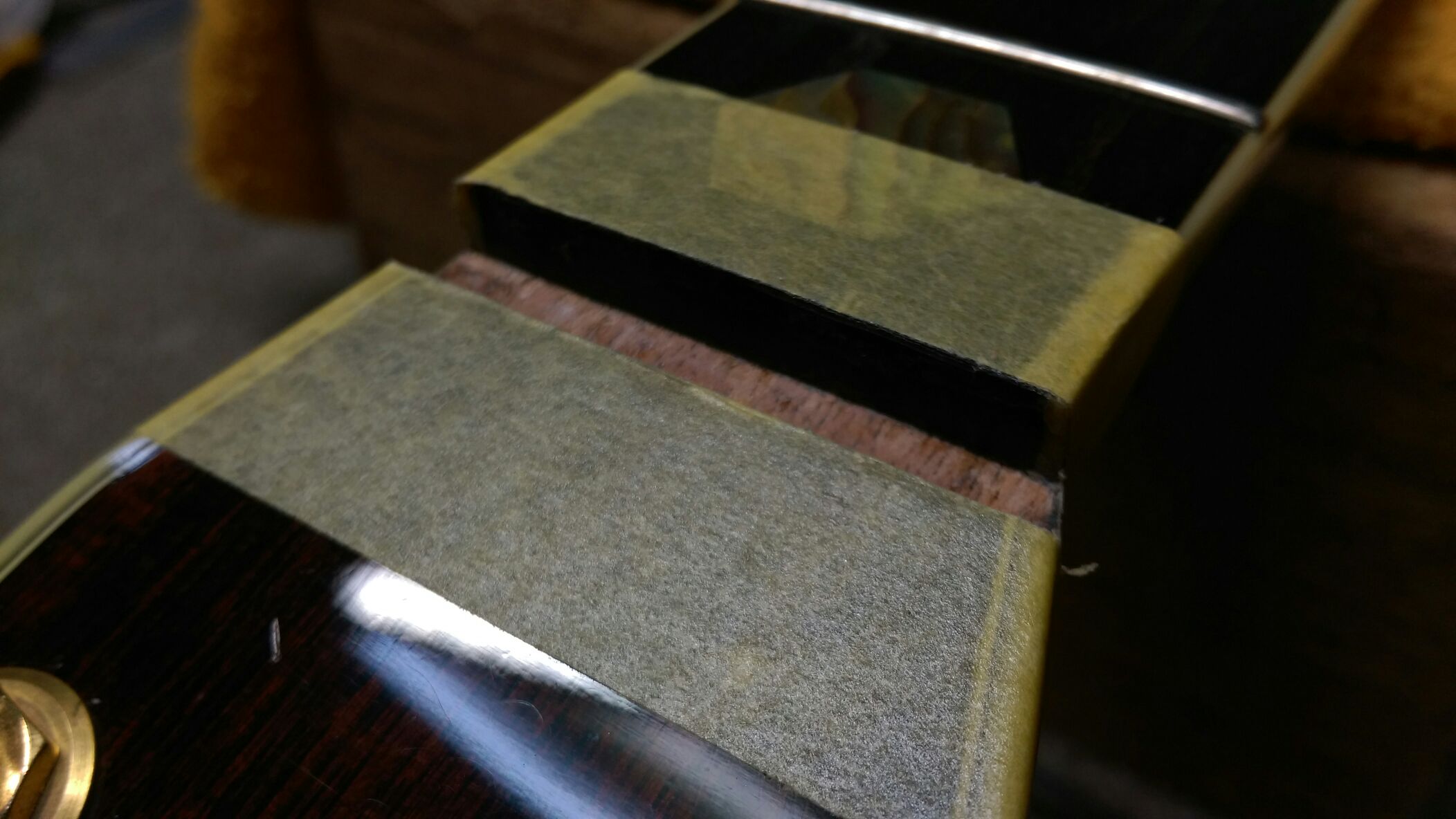 まずはトップ打痕修正とナット交換を行います。