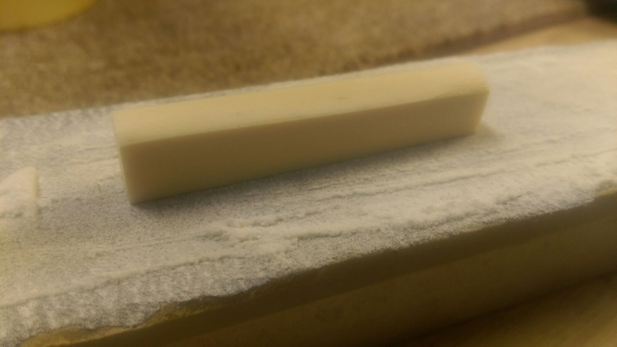S.Yairi YD-308 ナット作成 投稿日: 2015年10月28日2017年7月6日 投稿者: WoodyBlues こんにちは。リペアスタッフの金子です。 S.Yairi YD-308のナット作成です。 ブランクの象牙材を切り出します。 鉄工やすりやペーパーで厚みを揃えていきます。