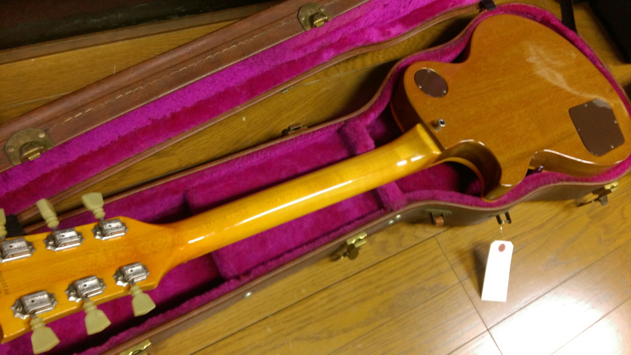 LP Deluxe完了&D-1割れ補修 投稿日: 2016年4月1日2017年6月28日 投稿者: WoodyBlues こんにちは。リペアスタッフの金子です。 Gibson Lespaul Deluxeのネックリフィニッシュは水研ぎ、コンパウンド磨き上げを行い、最後に弦を張って作業完了です。 Martin D-1は割れ補修部分のタッチアップに入りました。周りと馴染むよう木目を描き、ウッドシーラーを塗布します。