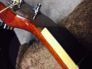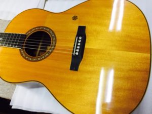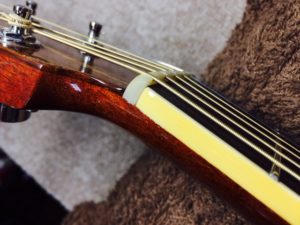 Larrivee L-09の作業の続きです。タッチアップの研磨作業を行います。