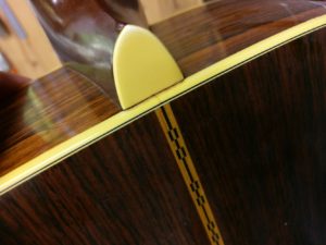 このようにヒール部分がやや浮いている状態でした。一度ネックを外し、角度を調整してから再接着します。