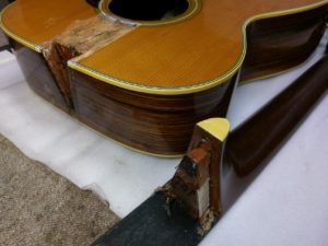 Martin 000-28のリペアは続いてネックリセット作業に入ります。