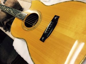 弦溝が深く開放の音でビビリが発生していましたので、新しく牛骨材のものと交換します。